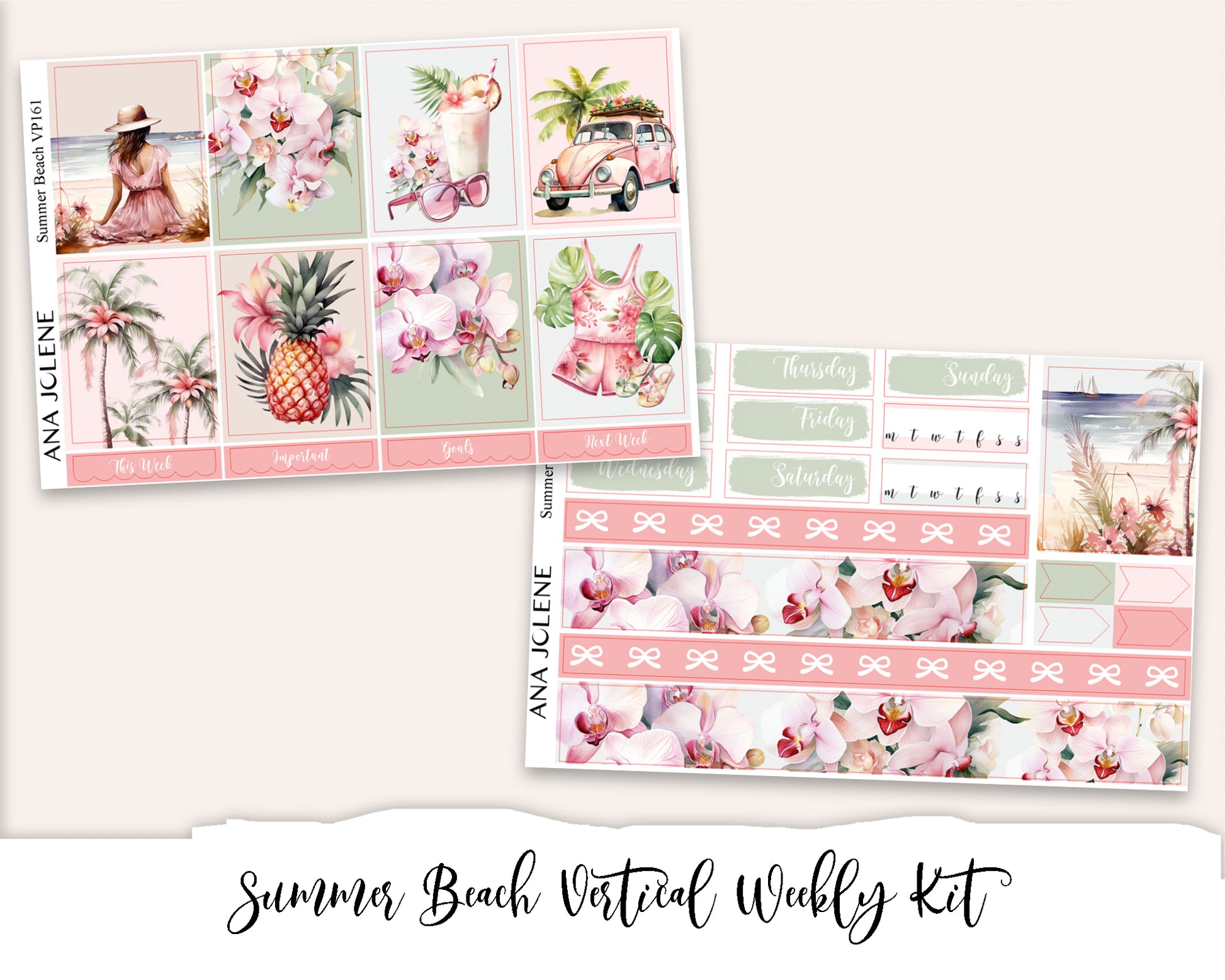 SUMMER BEACH Planner Sticker Kit (Vertical Weekly)