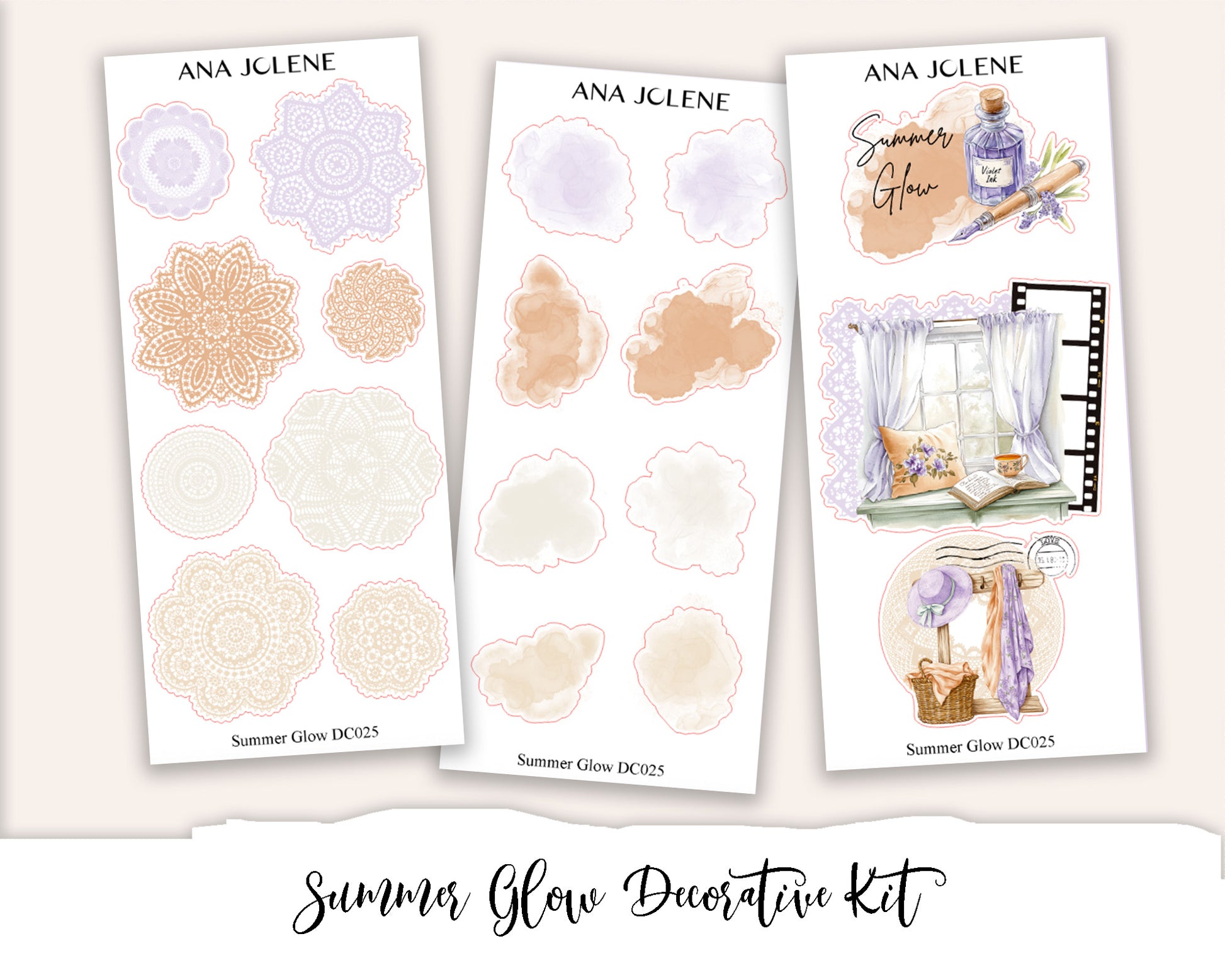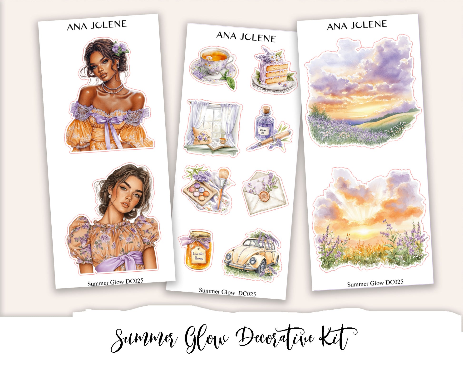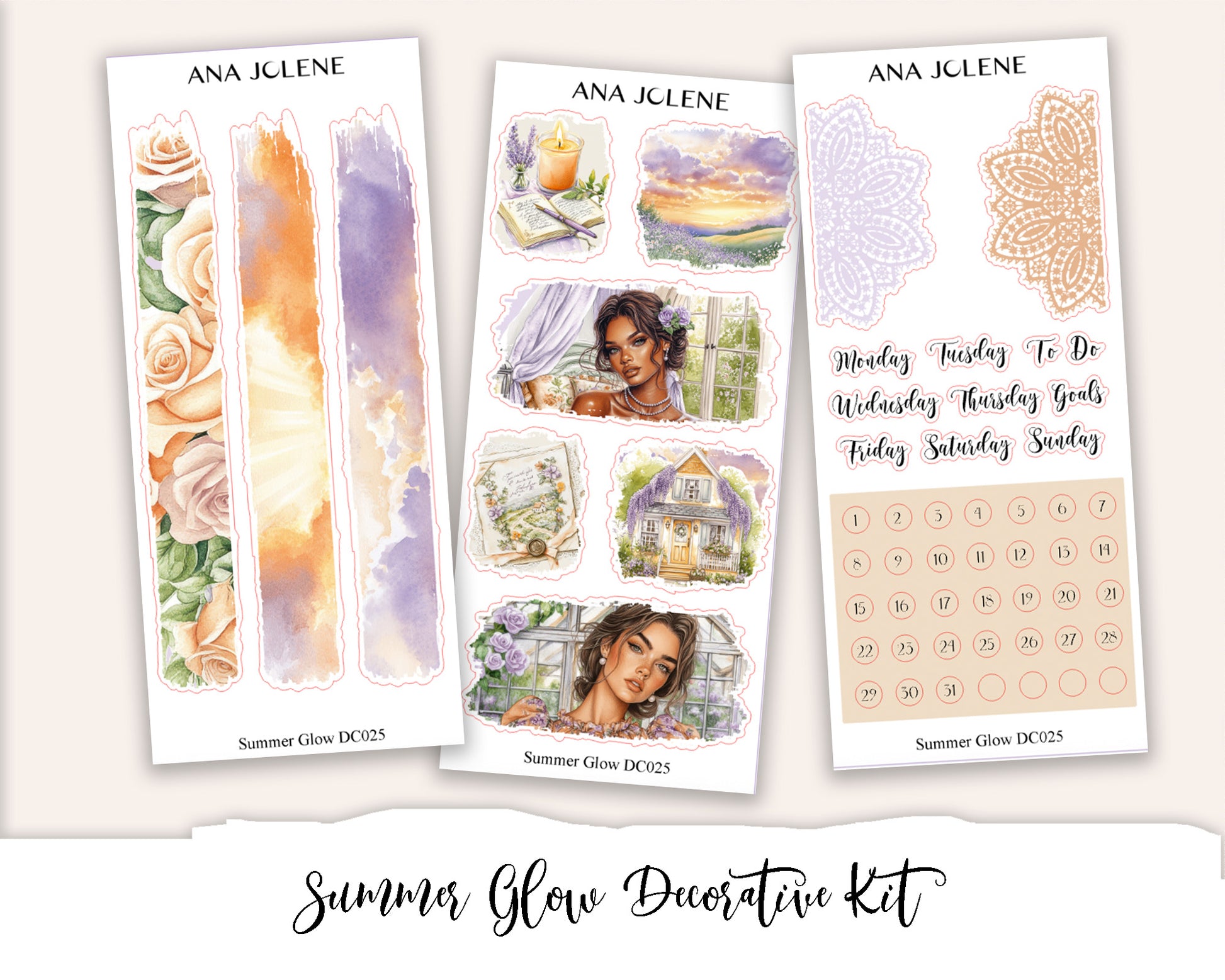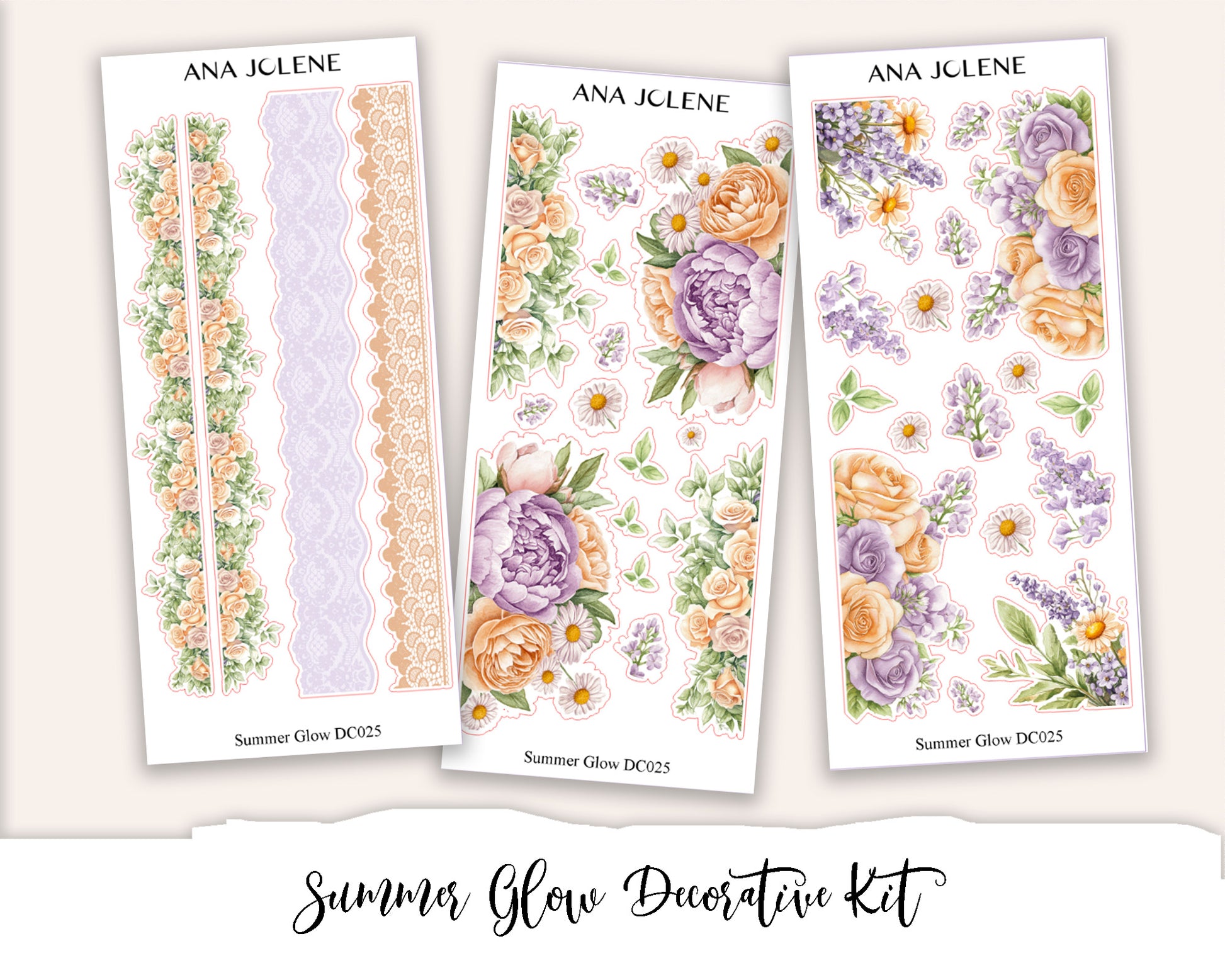 This is a 9 page kit comprising of decorative stickers to use in your planners and journals. Includes various elements such as floral and lace trim, floral bouquets, floral corners, fashion girls, decorative elements and scenes as well as doilies, alcohol ink swatches and collages. Compatible with ALL planners.