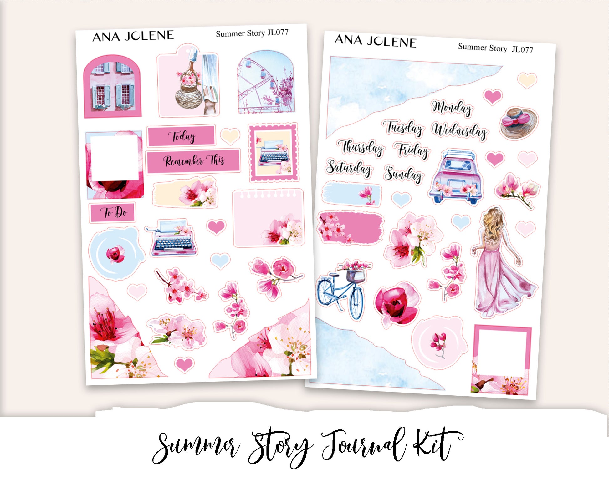 Planner Sticker Kit for bullet journals, Hobonichi and B6 Stalogy notebooks. This is a two page kit featuring medium sized ripped washi, swatches, deco elements and fashion girls, perfect to help you decorate your planners or journals.
