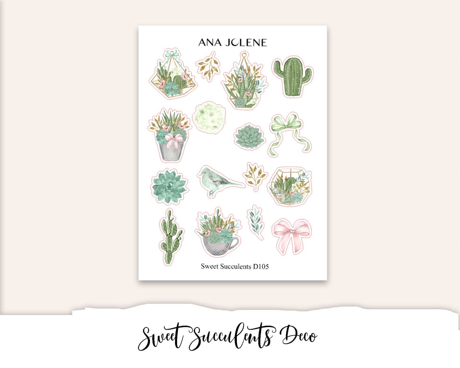 Includes one page of deco/journaling stickers of your choice for planners and bullet journals. Printed on permanent white matte sticker paper or transparent matte.
