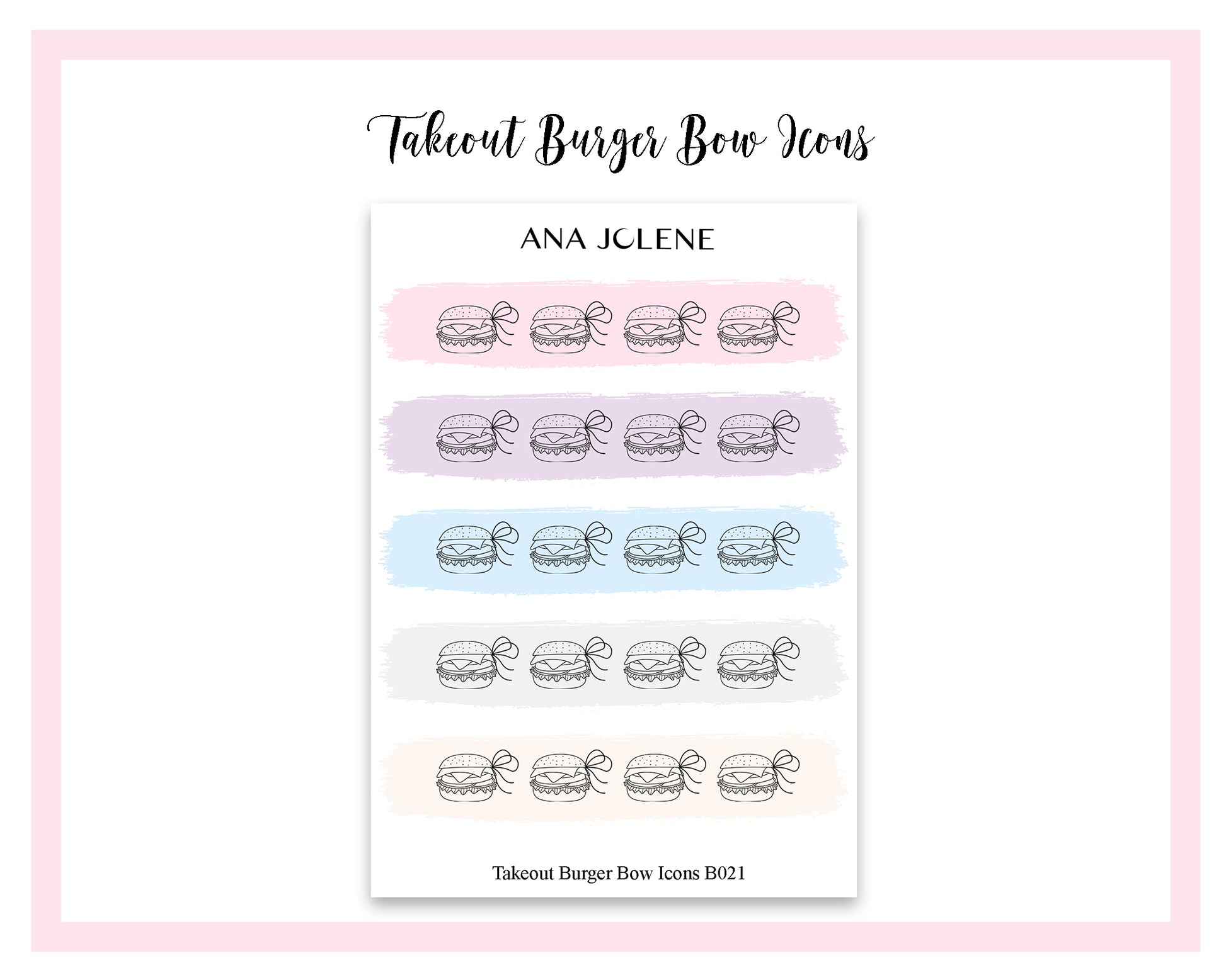 Takeout Burger Bow Icons - Minimal Line Art Bow Icons Stickers for Planners and Bullet Journal