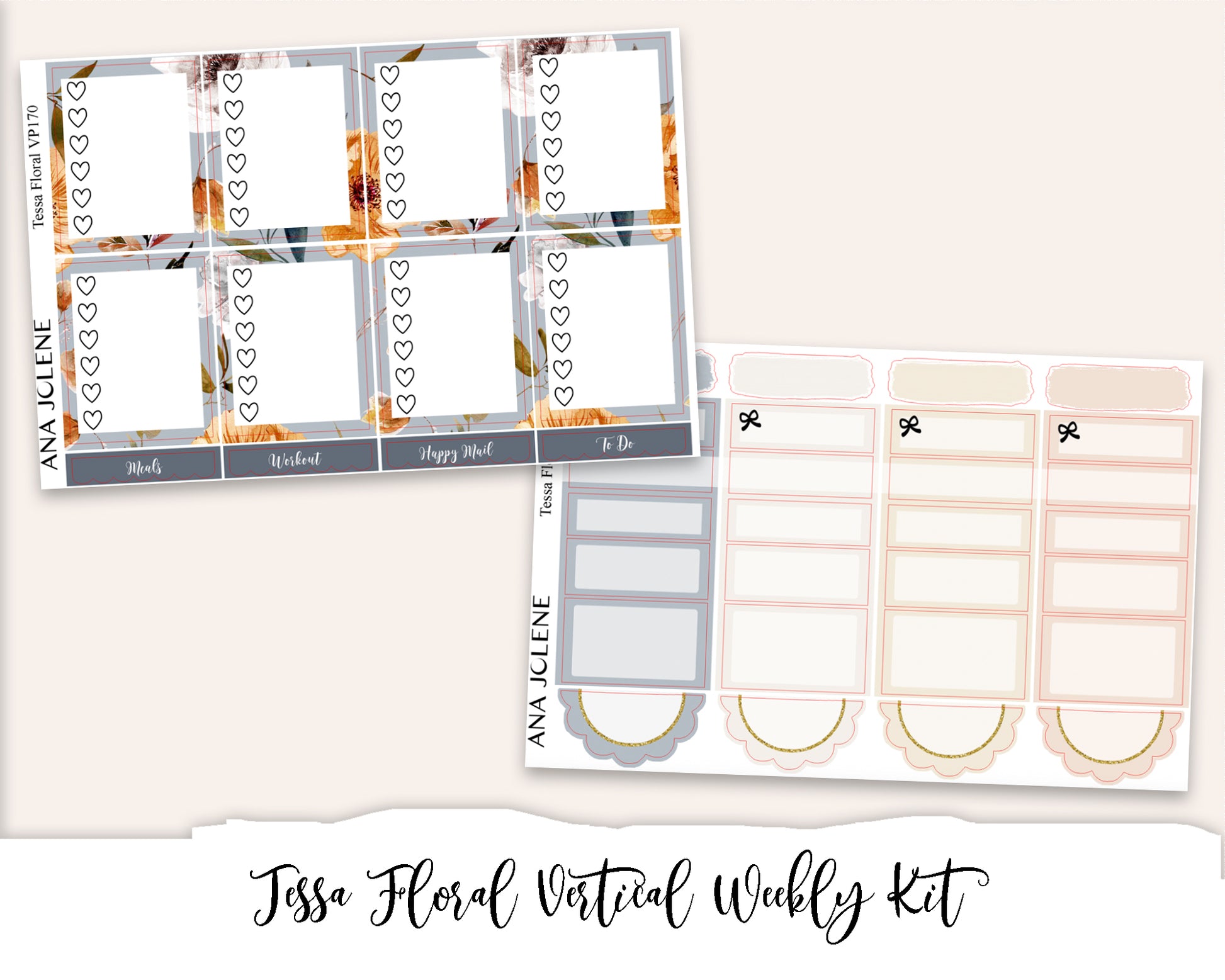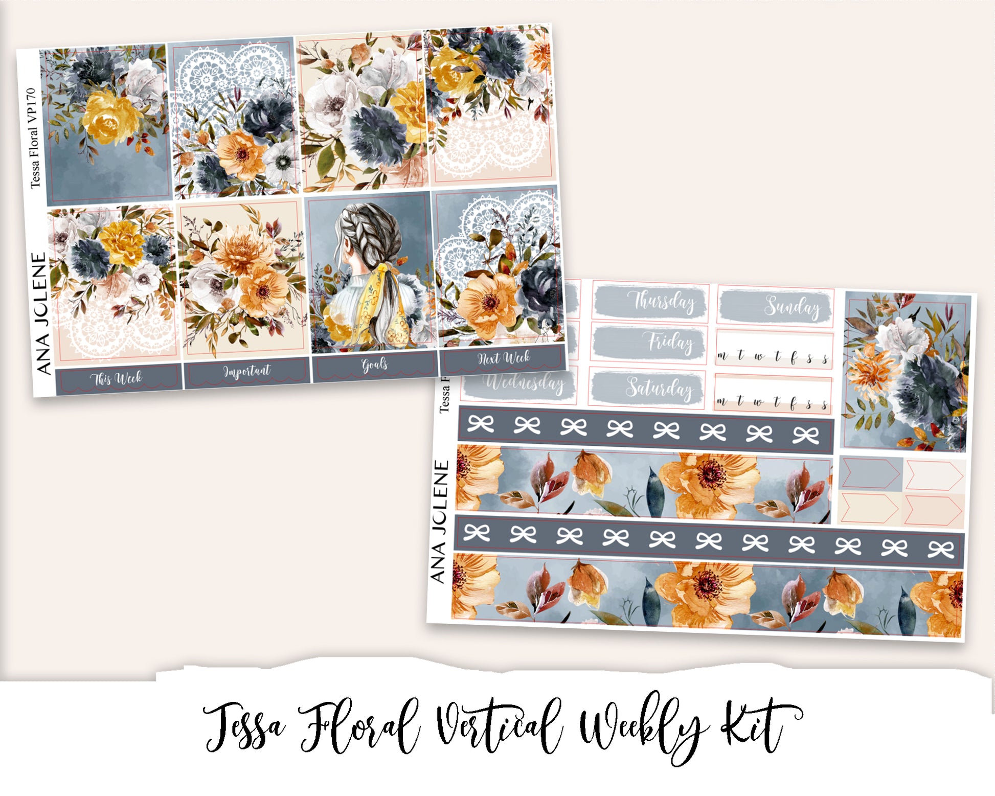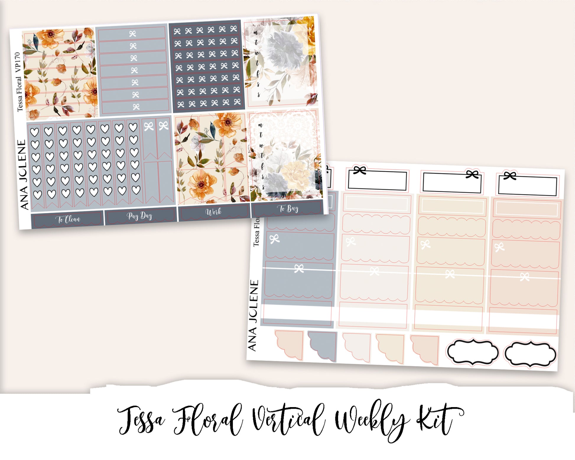 TESSA FLORAL Planner Sticker Kit (Vertical Weekly)