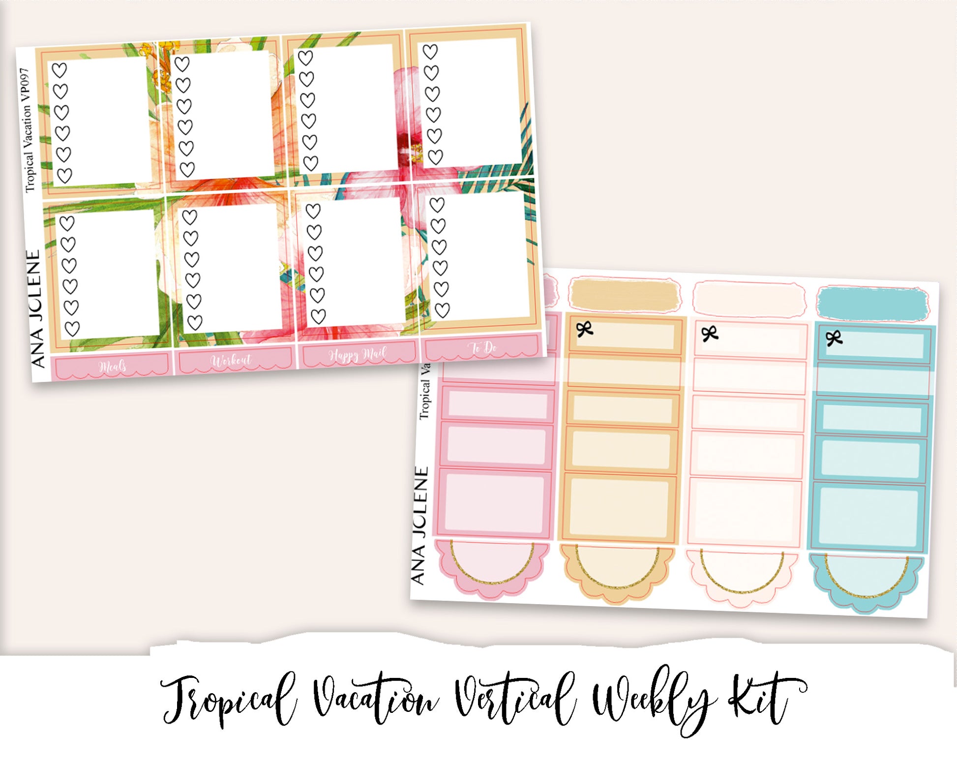TROPICAL VACATION Planner Sticker Kit (Vertical Weekly)