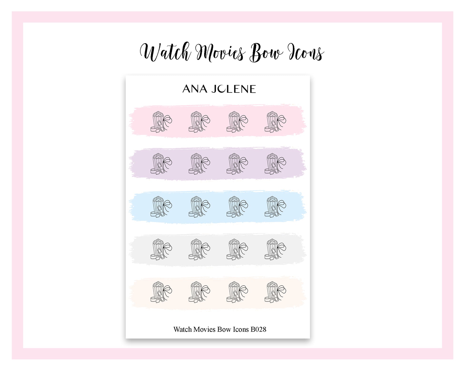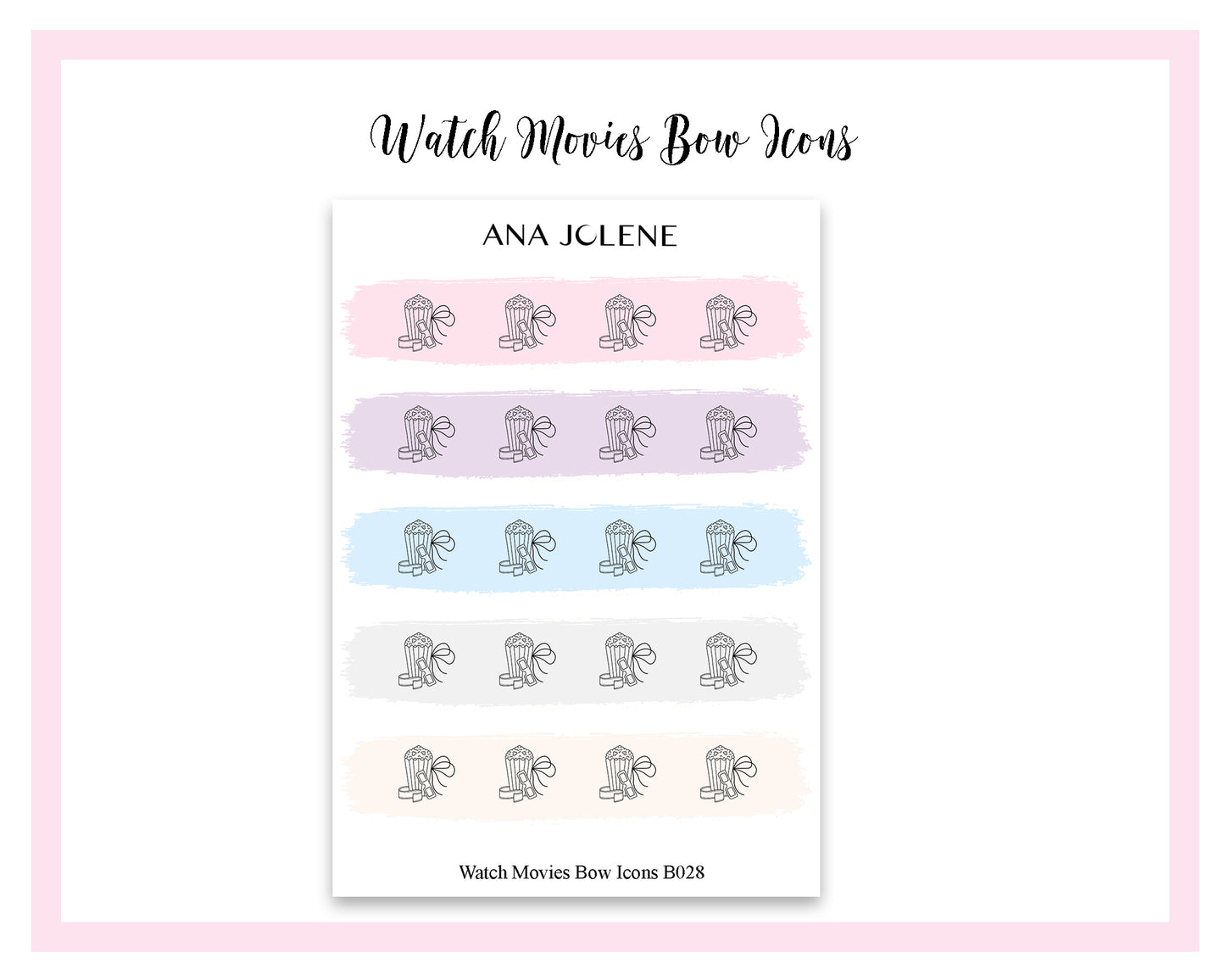 Watch Movies Bow Icons - Minimal Line Art Bow Icons Stickers for Planners and Bullet Journal