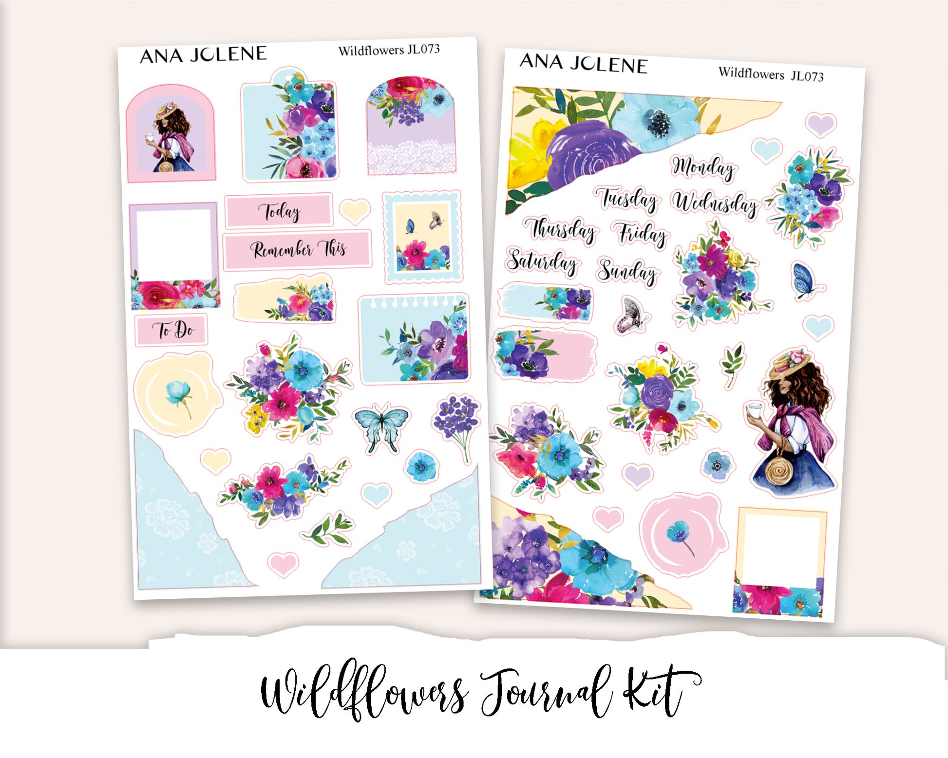Planner Sticker Kit for bullet journals, Hobonichi and B6 Stalogy notebooks. This is a two page kit featuring medium sized ripped washi, swatches, deco elements and fashion girls, perfect to help you decorate your planners or journals.